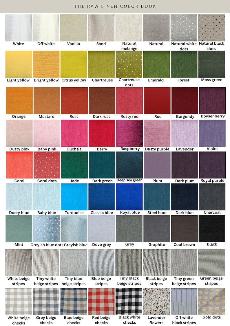 Additionally, please note that purchasing items of the same color at different times may result in slight color differences. This occurs because items may be manufactured from different dye lots, and variations in shade may occur due to the inherent qualities of natural linen.